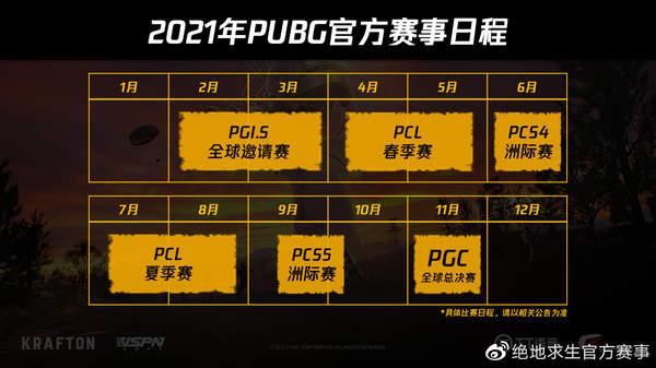 2021年,绝地求生冠军联赛赛事组织委员会(以下简称“PCL赛事组委会”)计划举办两届联赛,PCL春季赛将于4月中旬举行,PCL夏季赛将于7月下旬举行。每届联赛为期6周,经过激烈比拼,将为PCS东亚洲际系列赛持续输送最强PCL俱乐部。
