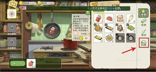 1、制作食物需要去厨房,在厨房中点击烹饪;;