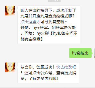 答题格式:hy+答案。如答案是火影忍者,回复:hy火影忍者。hy和答案间不能有空格哦!