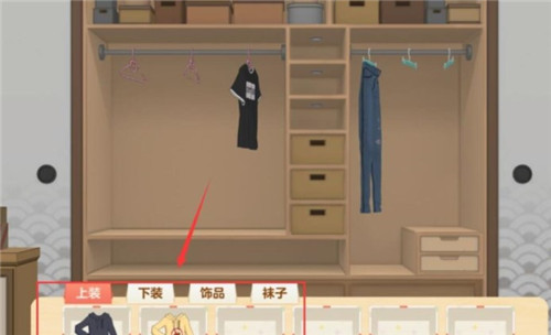 2、然后点击打开衣橱,可以看见衣柜里的衣服;