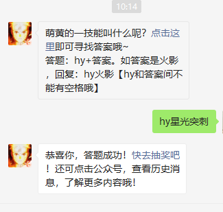 答题格式:hy+答案。如答案是火影忍者,回复:hy火影忍者。hy和答案间不能有空格哦!