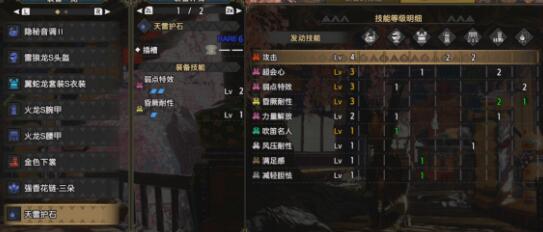 护石选择攻击2以上的,没有攻击护石的可以选择含有两个2级孔的插两个攻击珠。图中除开护石还剩余2个2级孔,全部插攻击珠(我珠子不够T-T),加上护石的攻击2,总共可以达到攻击6。挑战者触发的话刚好可以把角龙笛的负会心填平,且继续追加面板。