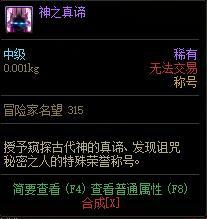 街机cn 来源:厂商 发表于:2021-04-09《DNF》新版本更新之后红玉的诅咒将会扩建至60层,玩家可以在高层获得新的称号神之真谛,很多小伙伴都想知道DNF神之真谛称号怎么样,下面小编就给大家带来《DNF》神之真谛称号属性介绍,一起来看看吧!