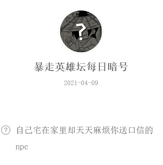 《暴走英雄坛》2021年4月9日微信每日暗号答案
