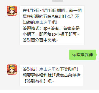 一定要注意答题的格式是“sp+答案”,记住,每天的答题活动都是会有不同的奖励,所以还没有答题的玩家们尽快答题领奖吧。