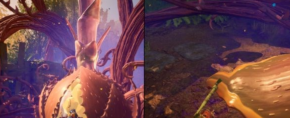 继续前进看到一个可以伸长的花,然后科迪向右侧延伸,不断地打开叶子,让小梅跳过去。