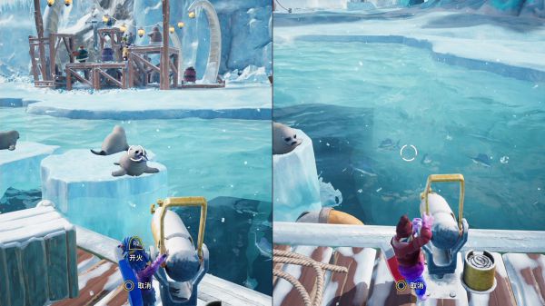 接下来就是目标的小游戏了,需要玩家合作把鱼插起来,最后喂给海报,满足数量以后就可以获得奖杯。