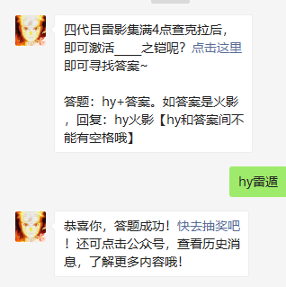问题:四代目雷影集满4点查克拉后,即可激活_____之铠呢?