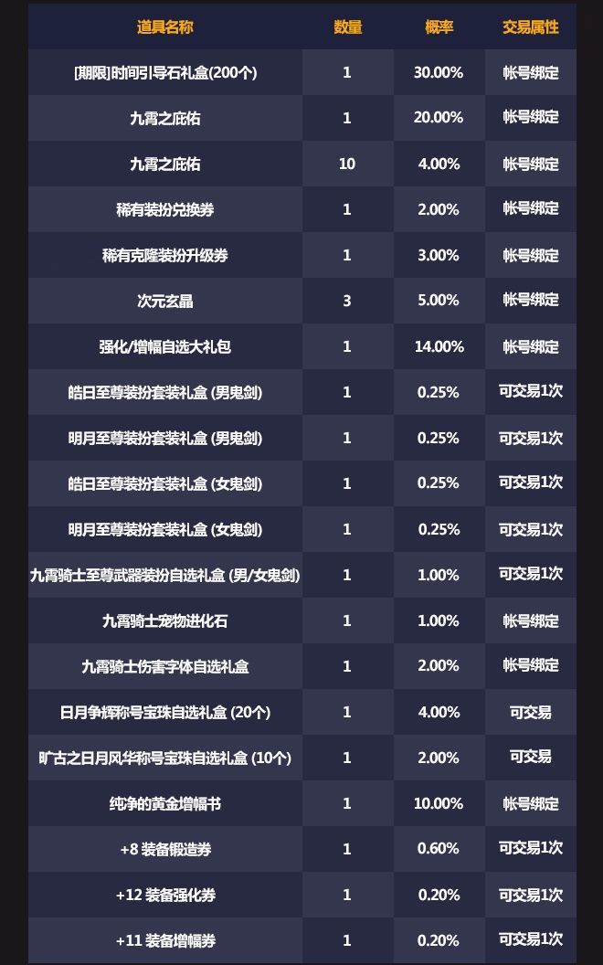 DNF九霄骑士宝物神秘礼盒奖励一览