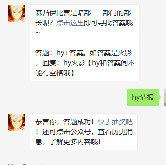 答题格式:hy+答案。如答案是火影忍者,回复:hy火影忍者。hy和答案间不能有空格哦!
