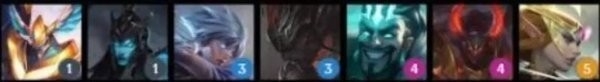 剑魔、滑板鞋、瑞雯、亚索,德莱文、铁男、凯尔、艾希。