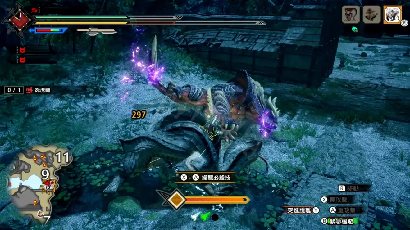 等到时间快到的时候按Y进行冲撞,这样可以让怪物B的御龙值迅速提升,你马上就可以骑上怪物B了。