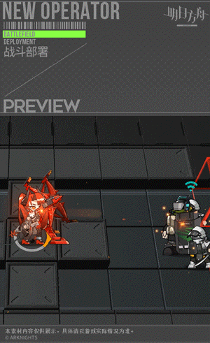 技能开启时,立即标记个攻击范围内的敌方单位(优先重量较重的萨卡兹种族敌人),使其更容易受到我方的攻击且防御力下降。熔泉每次攻击造成一定物理伤害。