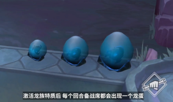 龙族的羁绊效果是每回合备战席新增一个龙蛋,几回合后孵化出来,这有点像当前版本的奥恩,龙蛋可能孵化出龙族的英雄也有可能是其他东西。
