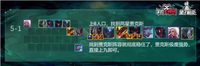 5-1上8人口,找到两星贾克斯阵容就彻底成型了,你就是五阶段的神
