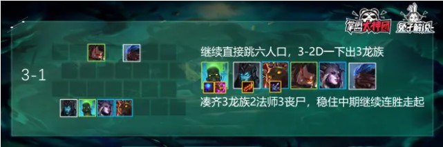 3-1直接跳6人口,3-2花钱D牌,凑齐3龙族3丧尸,不要怕花钱