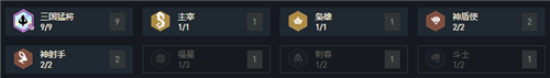阵容羁绊:9三国猛将&1主宰&1枭雄&2神盾使&2神射手