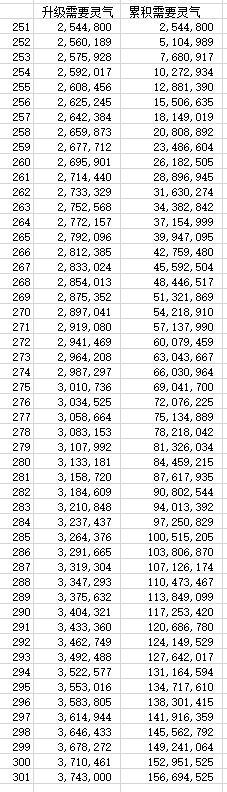 街机cn 来源:厂商 发表于:2021-04-20无极仙途灵根满级要多少灵气?无极仙途中升级灵根需要很多灵气,很多玩家还不清楚升级到满级所需的灵气,下面就为大家带来无极仙途250-300级灵根升级数据表分享。
