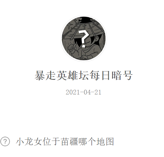 《暴走英雄坛》2021年4月21日微信每日暗号答案
