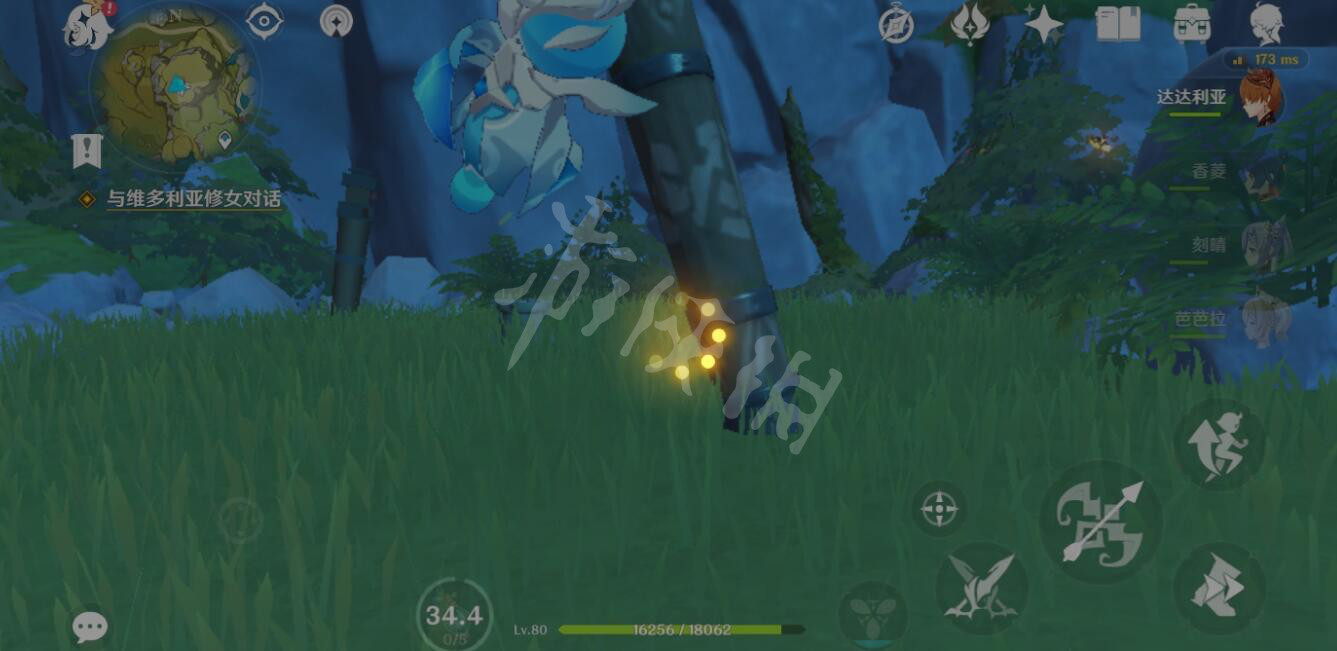 首先把时间调到晚上6点~早上5点之间,因为晶蝶会发光,尤其是晚上更加明显,对照图片。