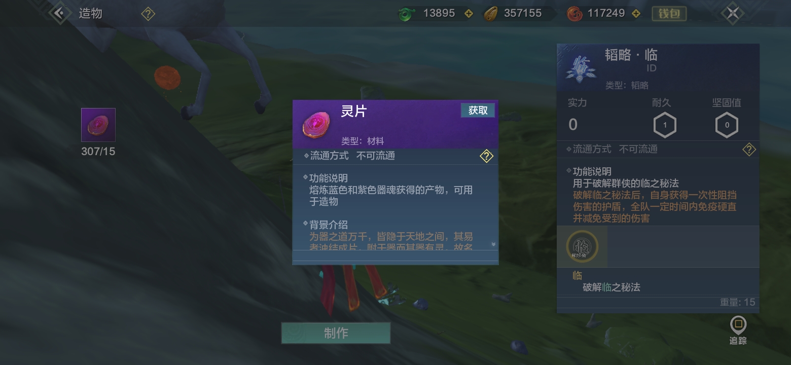2个茶白染料12个绛云露1个赤金甲片50个魂晶