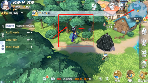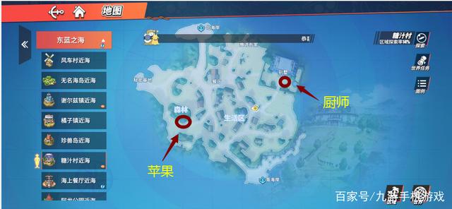 2、然后玩家去地图的左下角,森林附近,调查获取苹果,返回交给厨师即可完成任务。