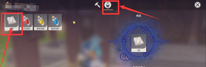 点击最上方的瓶子图标,然后点击左边的布匹;