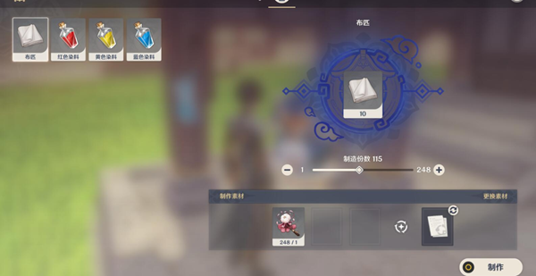 最后花费一定的霓裳花,即可制作布匹,红黄蓝染料分别是日落果、树莓和薄荷。