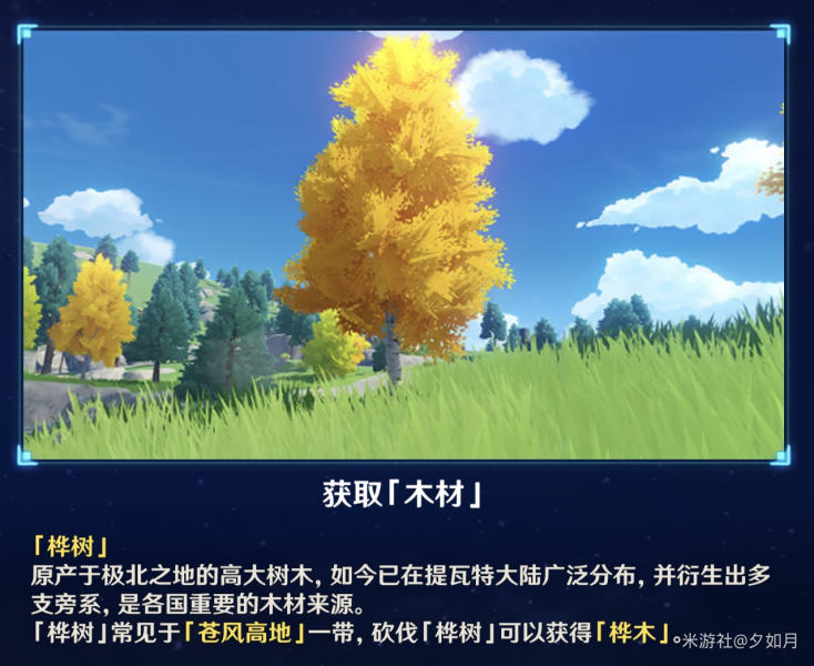 街机cn 来源:厂商 发表于:2021-04-28《原神》桦木是1.5版本新增的的材料,玩家可以通过砍伐桦树获得,桦木可以用来制作很多的家园摆件,很多小伙伴不知道原神桦木怎么获得,桦木哪里比较多,下面小编就给大家带来《原神》桦木采集位置分享,一起来看看吧!
