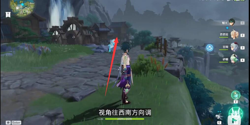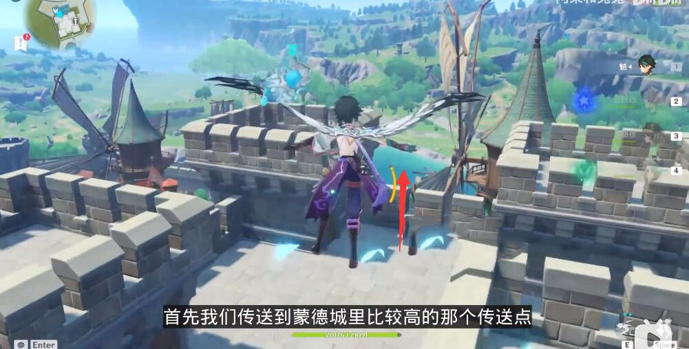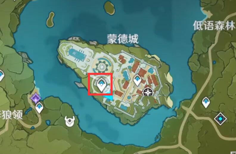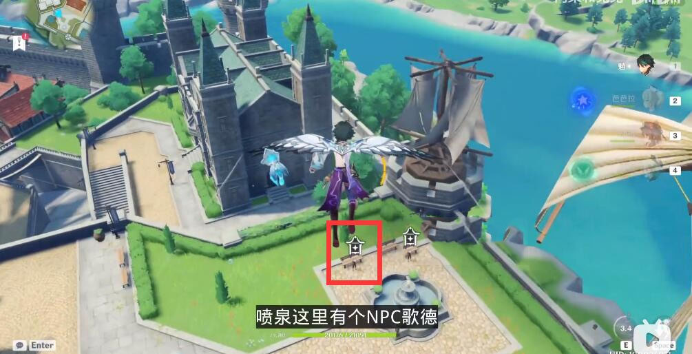 3、跳到下图的水池旁边,即可看见第一个NPC歌德;