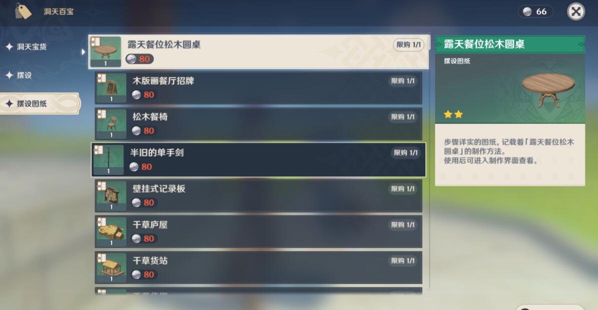 1.5版本家具图纸可在洞天百宝还有蒙德和璃月的商人购买。
