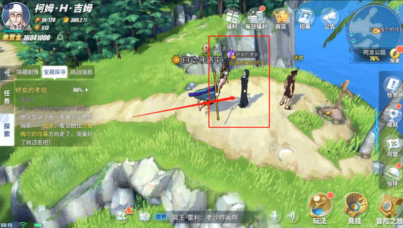 1、玩家在阿龙公园椰子村附近的码头,找修女她对话接取任务;
