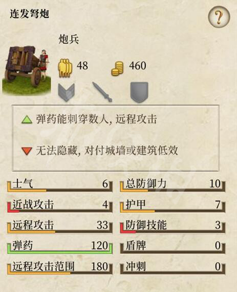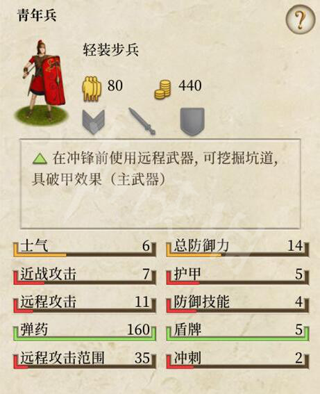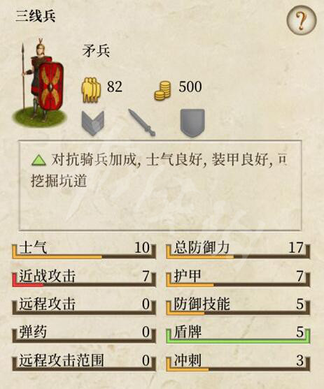 用来抵挡骑兵的冲击也是不差的,算是性价比很不错的炮灰。