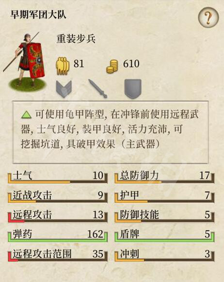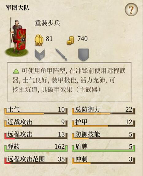 攻防俱佳,资金允许尽量替代军团骑兵。