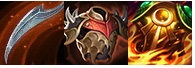 腕豪在这个阵容里的作用主要是顶在前排去拉仇恨、拉伤害,出装可以偏肉一些。龙牙、荆棘背心是坦克英雄的主流选择。第三件装备推荐做出火甲,对腕豪的契合程度高,坦度强。