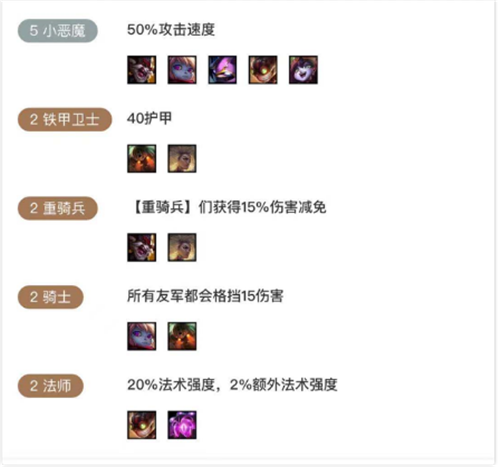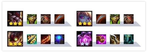 阵容全期在星级足够的情况下战斗力出色,新版本装备成型比较容易,前期可以走连胜路线,亦可以走连败,甚至一胜一负都能玩。并且相对于其他阵容,目前还较为冷门,容易成型。