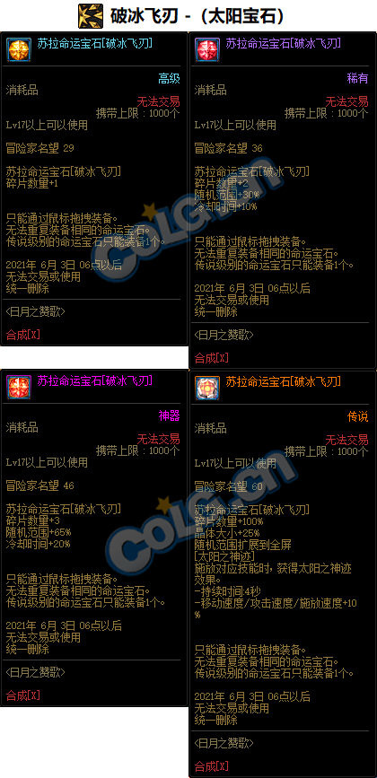街机cn 来源:厂商 发表于:2021-05-03《DNF》冰结师是一个近战的男法师,擅长使用冰系的法术,在命运的决战活动中,玩家可以获得命运宝石来提升技能属性,很多小伙伴都想知道DNF冰结师命运宝石属性怎么样,下面小编就给大家带来《DNF》冰结师命运宝石属性介绍,一起来看看吧!