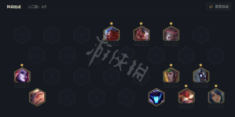 开局抢泪滴给寒冰做上青龙刀,前期拿上螳螂和狼人牌组成2斗士2黎明2刺客打工,等白嫖3龙族来了上场。