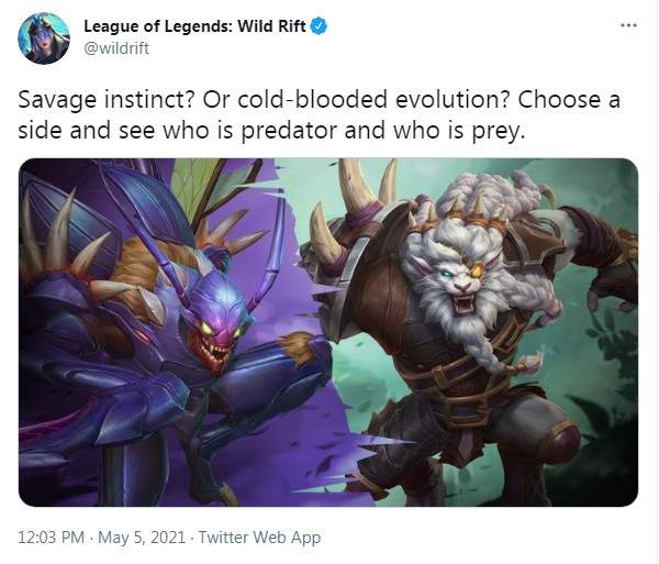 街机cn 来源:厂商 发表于:2021-05-06之前《英雄联盟手游》官推公布了狮子狗雷恩加尔的英雄介绍视频。今天官方公布了螳螂虚空掠夺者——卡兹克的英雄介绍视频。狮子狗和螳螂这对宿命之敌人,将在5月6日同步上线,官方也放出了螳螂对决狮子狗的宣传图,下面就一起来看看吧。