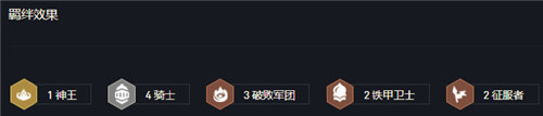 阵容的可替换性比较强,早期可以用破败军团打工,后期全换成其他体系。德莱文的体系单核主要是保德莱文,所以跟骑士、铁甲卫士一类有坦度的羁绊英雄可以多上一些,恰好骑士英雄非常的多,可替换性非常强,所以拼系的羁绊就根据实际上牌情况来调整即可。
