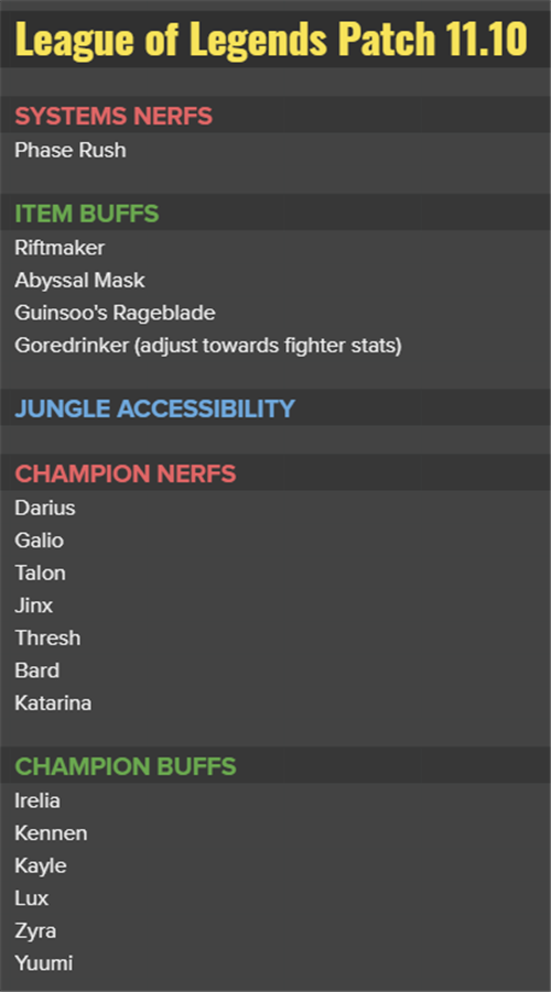 LOL11.10版本前瞻 锤石、男刀、卡特削弱 野区机制调整