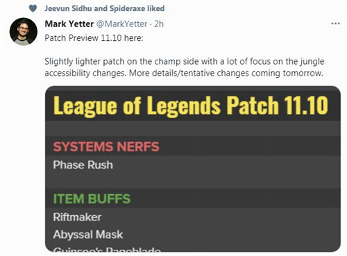 少量的英雄改动,更多的是针对野区调整,具体的改动会在明天公布。