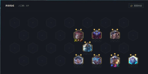 前期阵容直接以刺客羁绊为主来运营,双刺客搭配双骑士或者斗士来保证阵容的坦度和输出,中期加入魔女羁绊,此时是该阵容的高爆发时期,利用前期魔女爆发伤害高的优势来保证血量健康,到达后期补充艾翁英雄即可。