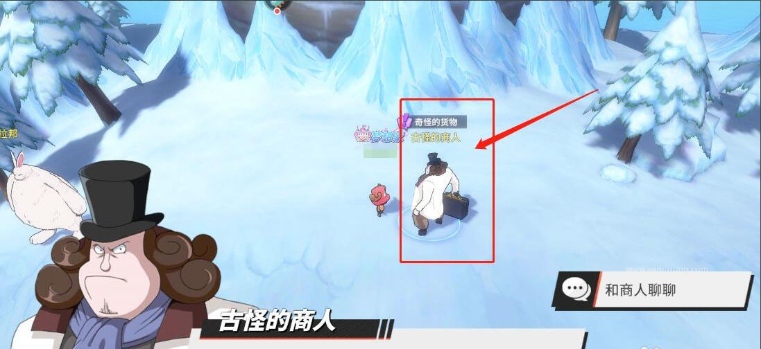 1、玩家前往铁桶王国的右上,找到商人与他对话,他让你帮忙找蘑菇;