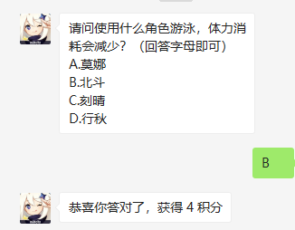 题目:请问使用什么角色游泳,体力消耗会减少?