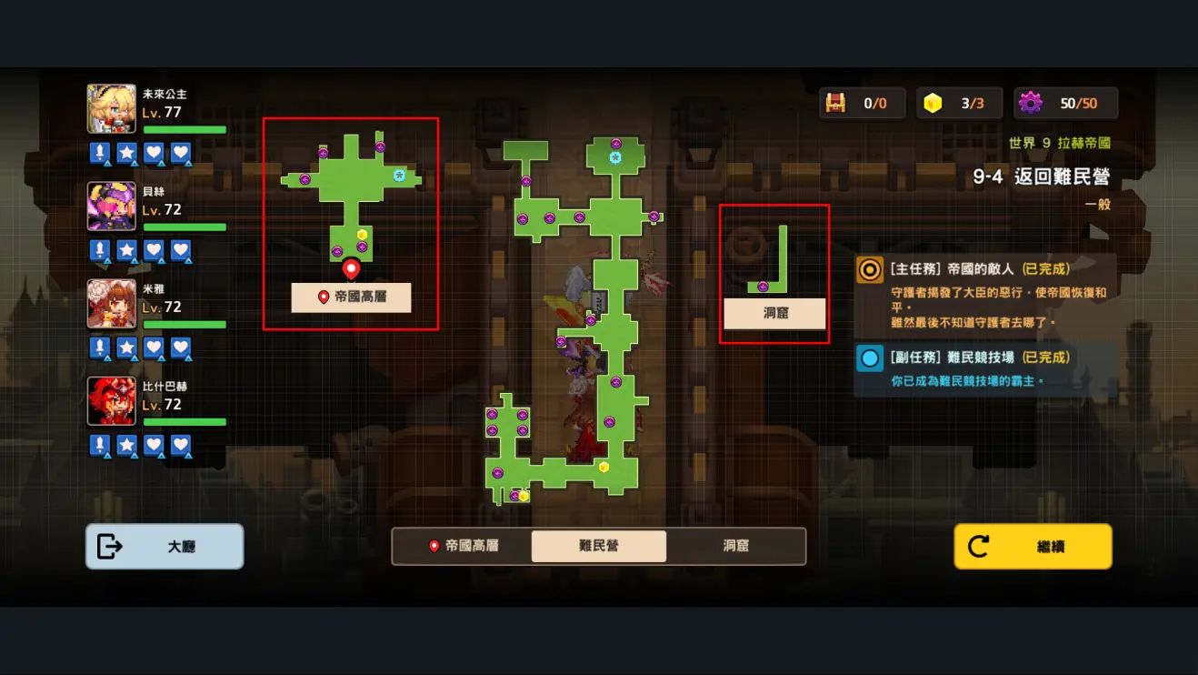 世界9-4 返回难民营 全收集地图如下