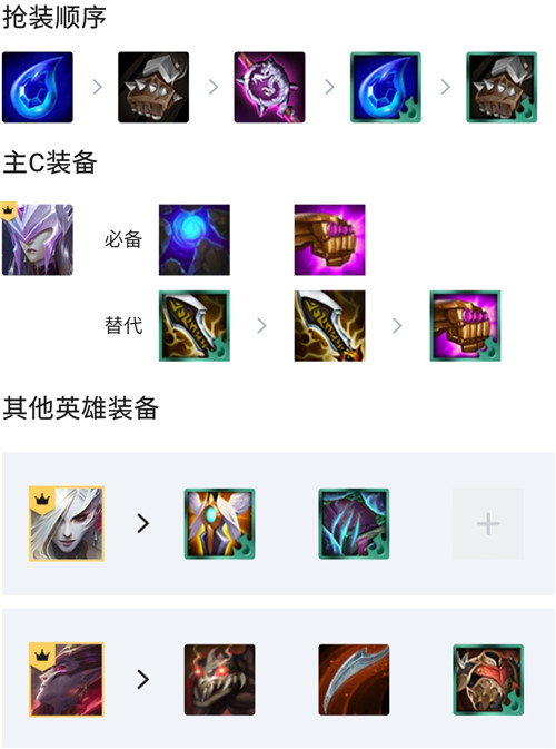 阵容推荐:冰女、吸血鬼、妖姬、莫甘娜、艾翁、千珏、大头、狗熊