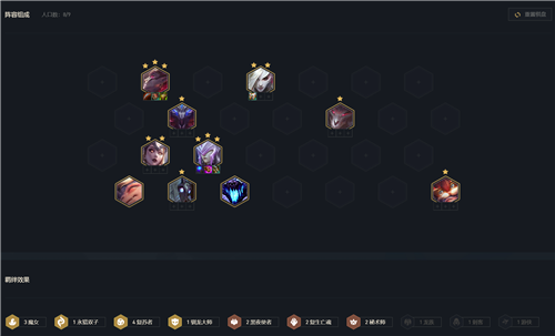 阵容羁绊:4复苏3魔女1永猎双子1驯龙大师2黑夜2亡魂2秘术