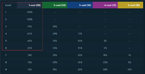 阵容前期的运营是非常关键的,我们先来看看在11.9版本的搜牌概率: