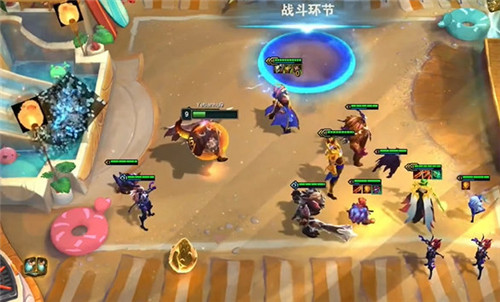 阵容的站位把输出点都放在后排,在这个阵容中5费卡的大头是核心的输出点,可以让大头沉底位去召唤炮台打输出。前场放一些比较肉的英雄去抗伤,白给的快召唤赛恩。